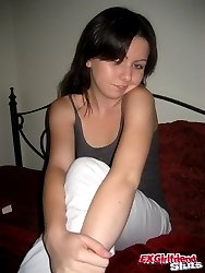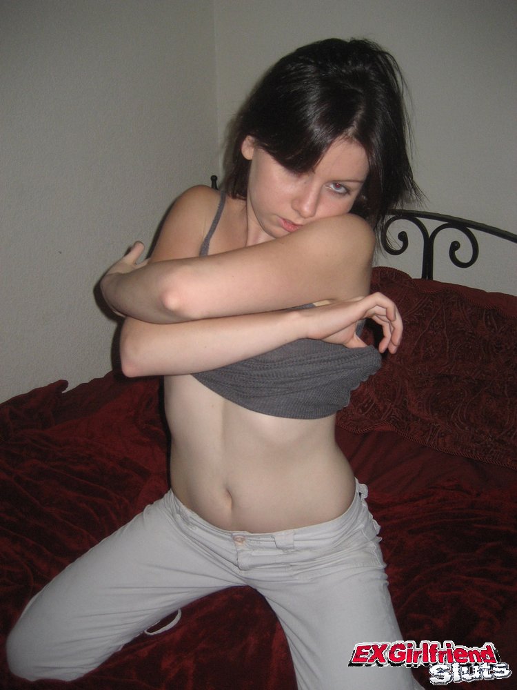 Raunchy brunette exgirlfriend babe Faith stripping and showing her small boobs